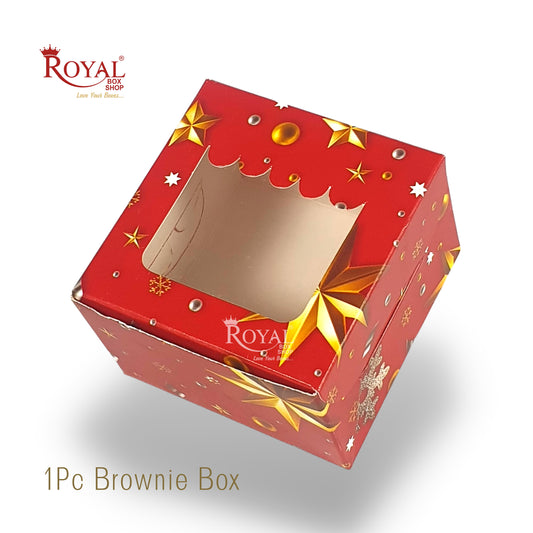 1Pc Christmas Brownie Window Box I Red Color I 3"x3"x1.5" inches I For Christams Gifting