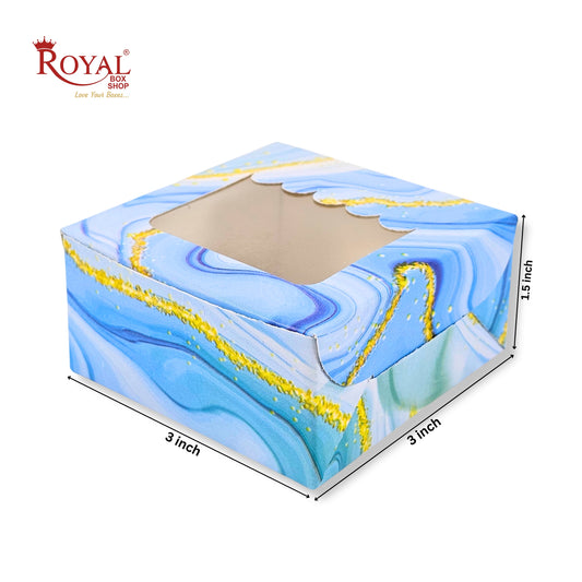 1pc Brownie Window Box | 3x3x1.5 Inches | Blue Marble Print