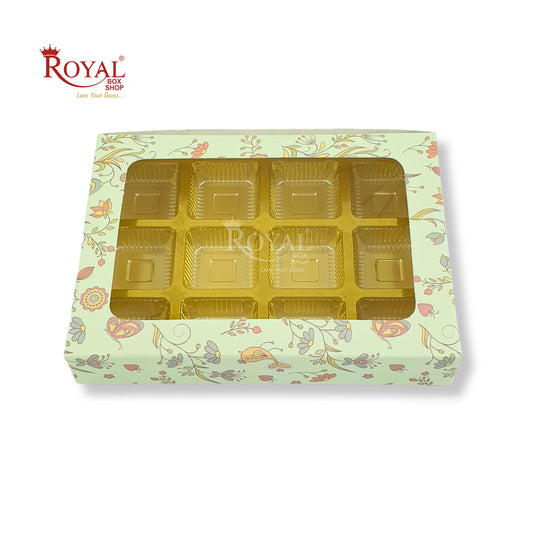 12 Cavity Chocolate Box | 7.5 x 5.5 x 1.25 inches | Parrot Green With Golden Foilling