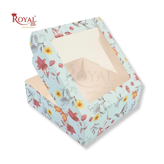 Dry Cake Box With Window I Size 8x8x3 inch I Blue Floral