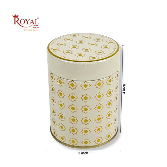 Premium Tin Jars I 4"x3" Inches I Cream With Golden Print I Perfect for Christmas Gifting, Return Gifts, Hamper Box, Storage