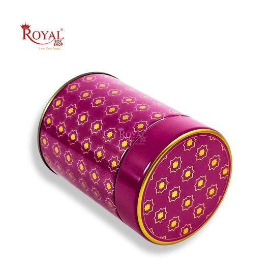 Premium Tin Jars I 4"x3" Inches I Magenta With Golden Print I Perfect for Christmas Gifting, Return Gifts, Hamper Box, Storage