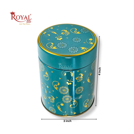 Premium Tin Jars I 4"x3" Inches I Blue With Golden Print I Perfect for Return Gifts, Hamper Box, Storage