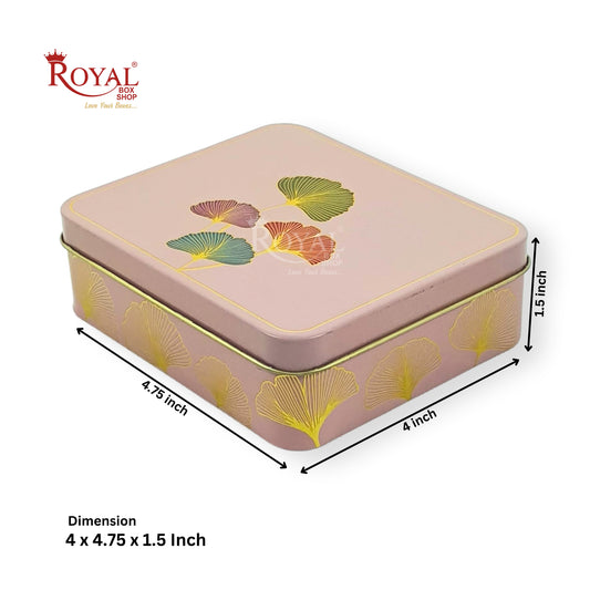 Premium Tin Box I 4"x4.75"x1.5" Inches I Pink with Golden Leafing