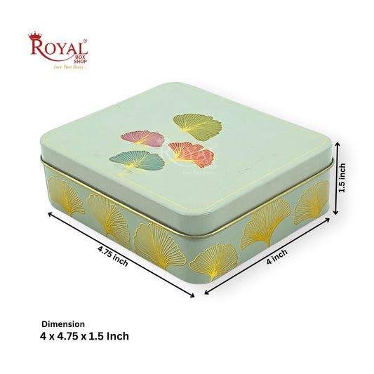 Premium Tin Box I 4"x4.75"x1.5" Inches I Green with Golden Foiling
