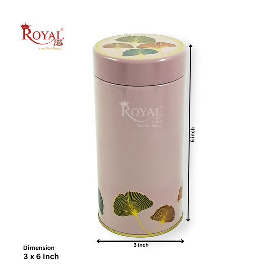 Premium Tin Jars I 6"x3" Inches I Pink With Golden Leafing
