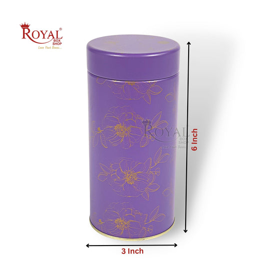 Premium Tin Jars I 6"x3" Inches I Purple I Golden Foiling I Cannister for Return Gifts, Hamper Box, Christmas GIft, Storage