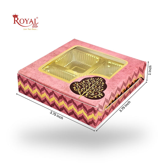 Premium 4 Chocolate Box with Golden Tray | 3.75x3.75x1 inches | Pink