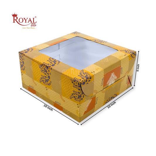 Window Cake Box | 10x10x5 Inches | Floral Print Yellow | WB | B2B