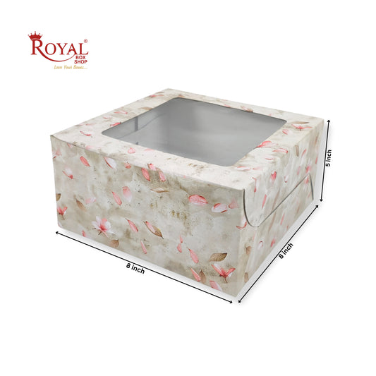 Window Cake Box I 8x8x5 Inches I Floral Print Grey -WB