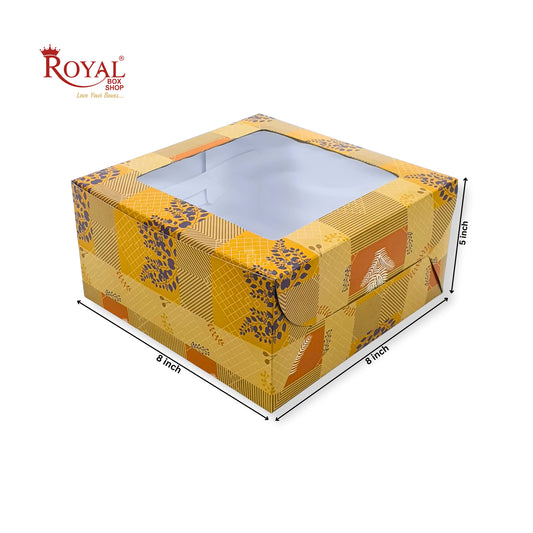 Window Cake Box I 8x8x5 Inches I Floral Print Yellow -WB