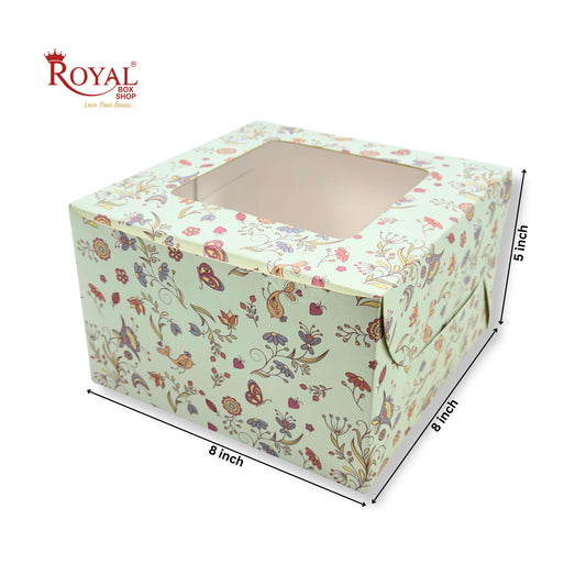 Window Cake Box | 8x8x5" Inches | Green Floral | B2B | Half Kg Cake Box
