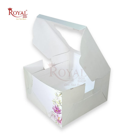 Window Cake Box I 10x10x5 inches I Floral Print Grey - WB