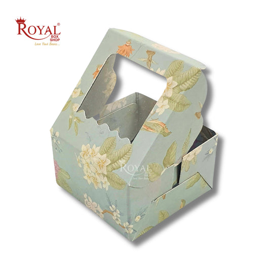 Single Brownie Window Box Grey With Flower Print - 3 x 3 x 1.5 Inches