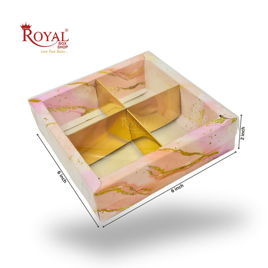 4pc Brownie Hamper Box with Transparent Lid | 6x6x2 inches | Pink Marble Print