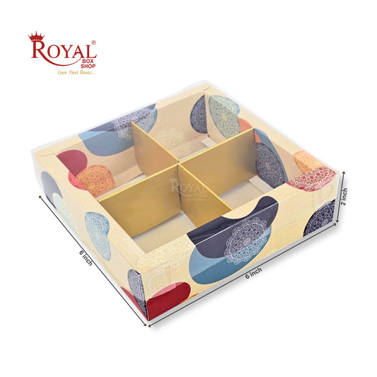 4pc Brownie Hamper Box with Transparent Lid | 6x6x2 inches | Cream Mandala print