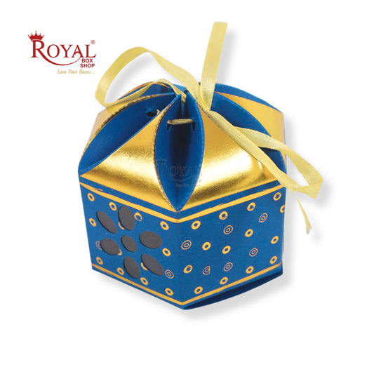 Royal Lotus Shape Gift Box I 3.5x3.5x2 Inch I Blue I Polka