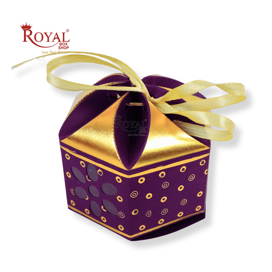 Royal Lotus Shape Gift Box I 3.5x3.5x2 Inch I Purple I Polka