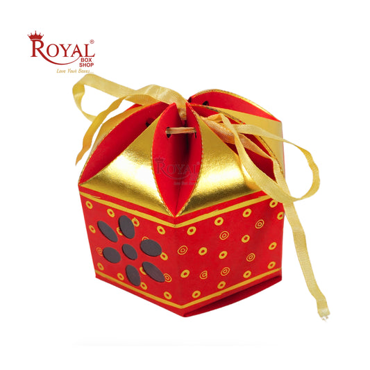 Royal Lotus Shape Gift Box I 3.5x3.5x2 Inch I Red I Polka