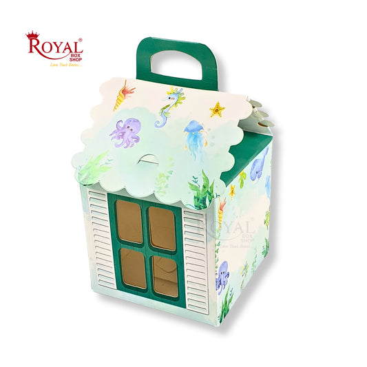 Hut Shape Gift Boxes I 4x4x4 Inch I Aqua Sea Theme I Perfect For Birthday, Return Favor, Baby Announcements