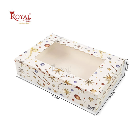 6pc Brownie Christmas Window Box I 9x6x2 Inches I White I Perfect for Brownies, Cookies, Candy & Chocolates