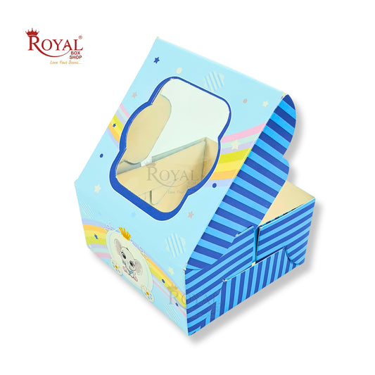 Single Brownie Window Box Baby Blue Elephant Theme - 3 x 3 x 1.5 Inches