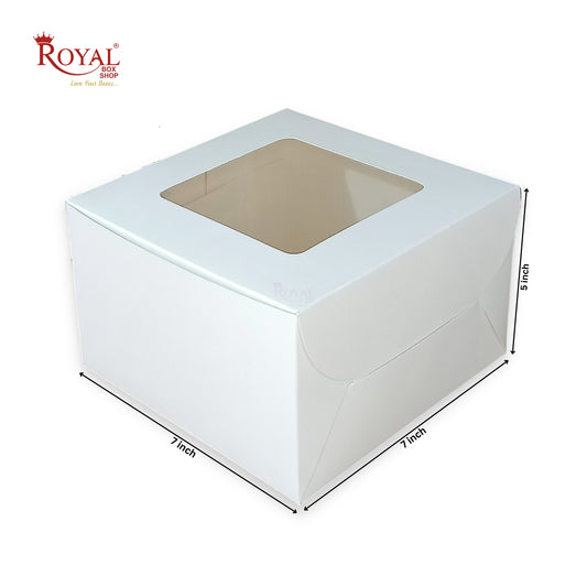 RoyalBoxShop® Cake Box With Window | 7x7x5 Inch | White | Cake Box