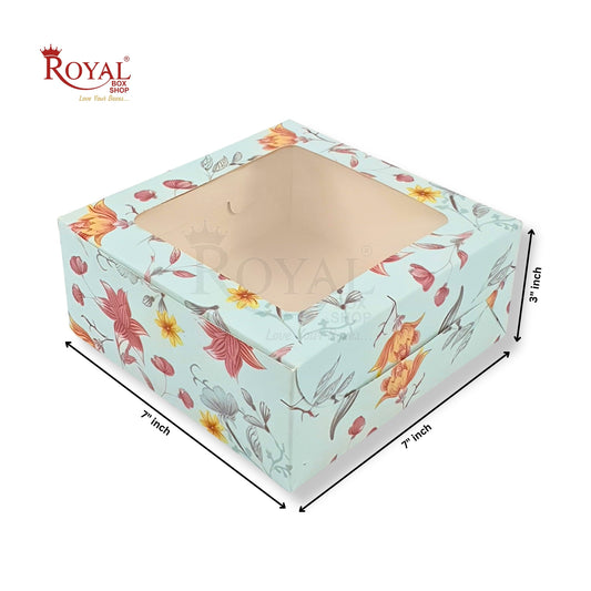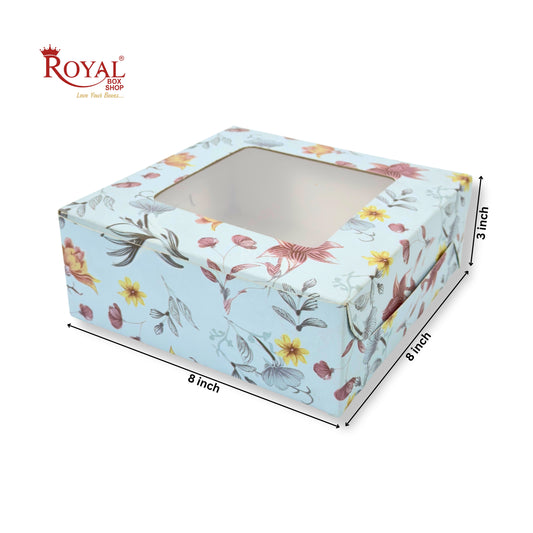 Dry Cake Box With Window I Size 8x8x3 inch I Blue Floral