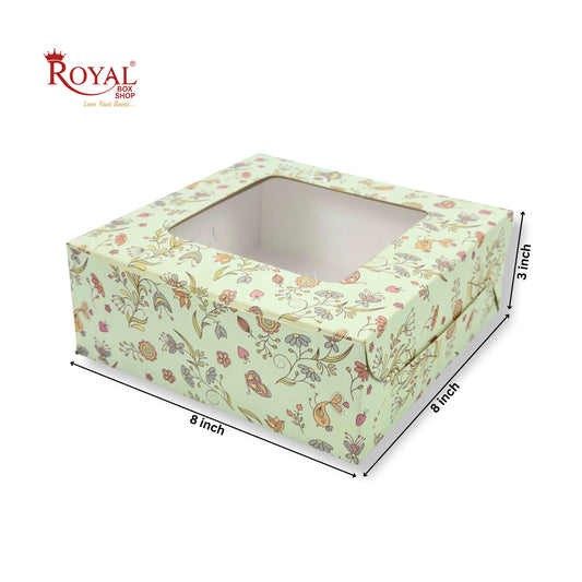Dry Cake Box With Window I Size 8x8x3 inch I Green Floral