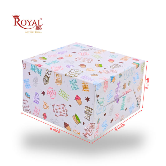 Cake Box | 8x8x5 Inches | White With Floral Print | WB
