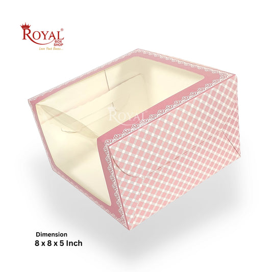 Cake Box with L-Shape Window I Pink Check I 8x8x5" Inch | Perfect for Half Kg Cakes Cookies, Candies, & Room Hampers