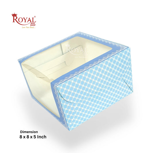 L-Shape Window Cake Box I Blue Check I 8x8x5" Inch | Perfect for Half Kg Cakes Cookies, Candies, & Room Hampers