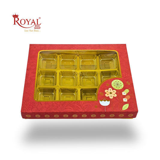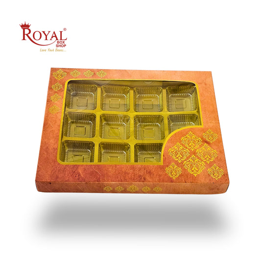 RoyalBoxShop® 12 Cavity Chocolate Box | RCH-12 D2 | Window Lid | Golden TrayRegular price Rs. 45.00Regular priceUnit price per-