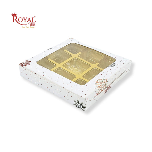 Christmas Theme 9 Cavity Chocolate Boxes with Window I White I For Christmas Gifting