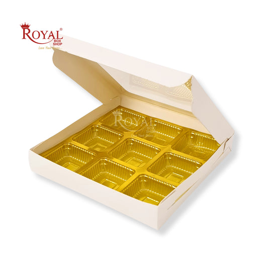 RoyalBoxShop® 9 Cavity Chocolate Box | RCH-09 D1 | Window Lid | Golden Tray