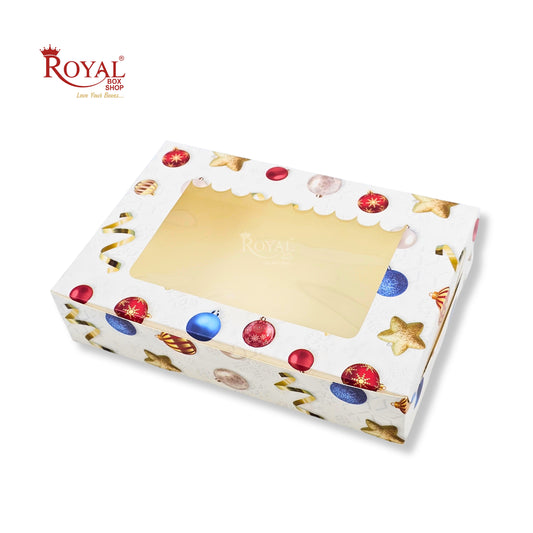 Christmas Theme Dry Cake Box With Window I Size 9x9x3 inch I White I For Cakes, Dry Cakes, Chocolates, Cookies, Muffins