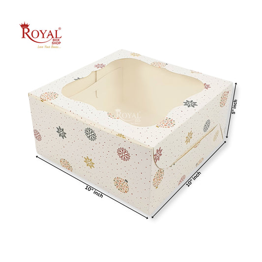 Cake Box With Window I White Christmas Theme I Size 10x10x5 inch I 350 GSM I One Kg Cake Box
