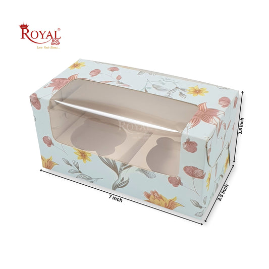 2pc Cupcake Box With Window I Size 7"x3.5"x3.5" I Blue Floral
