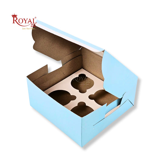4 Cupcake Box With Window | 7x7x3.5 Inches | Blue | WB