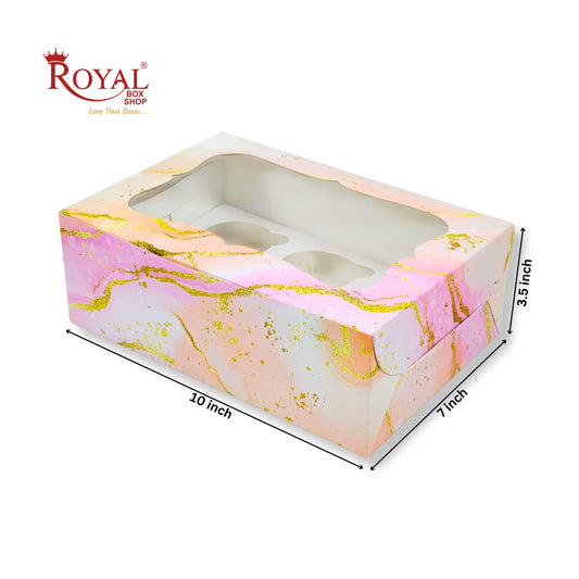 4 Cupcake Box With Window | 7x7x3.5 Inch | Pink Marble Print | FBB