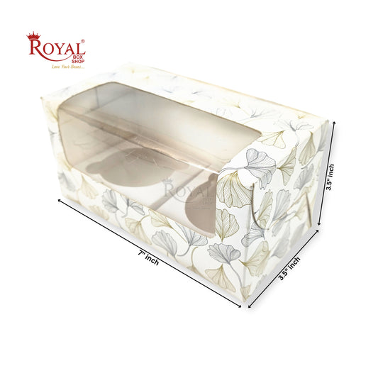 2pc Cupcake Box With Window I Size 7"x3.5"x3.5" I White Leaf