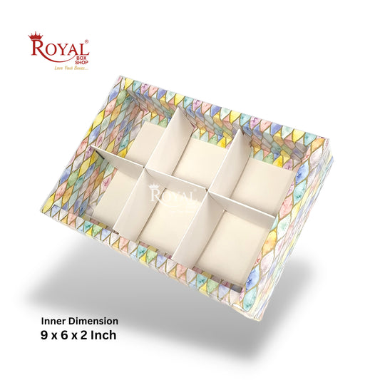 6pc Brownie Hamper Box with Transparent Lid I Multicolor I 9"x6"x2" inches I For Christmas Gift , Wedding Return Gifts, New Year Gifting