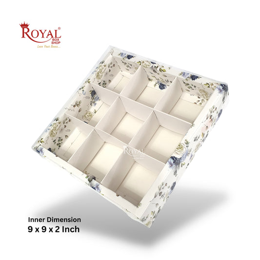 9pc Brownie Hamper Box with Transparent Lid I White Floral I 9"x9"x2" inches I For Christmas Gift , Wedding Return Gifts, New Year Gifting
