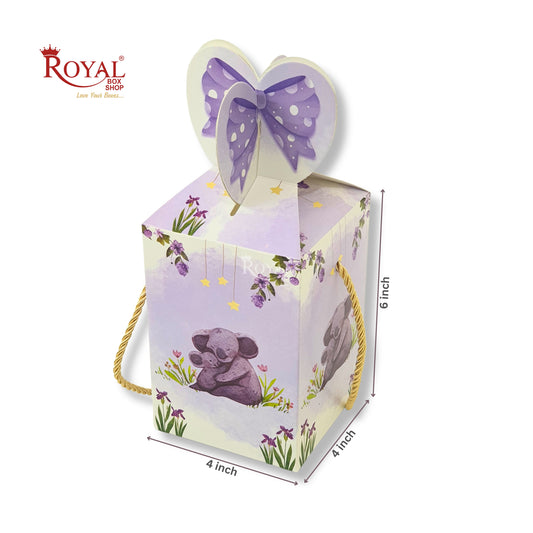 Gift Box Bow Shape | 4x4x6 Inch | RCF-02 D4 | Baby Pink Elephant Theme