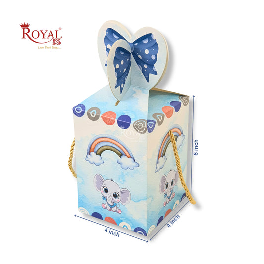 Gift Box Bow Shape | 4x4x6 Inch | RCF-02 D5 | Baby Blue Elephant Theme