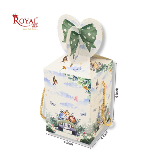 Gift Box Bow Shape | 4x4x6 Inch | RCF-02 D6 | Baby Green Jungle Theme