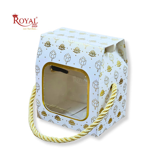 Premium Gift Box | RCF-14 | 3x2.45x3.75 Inches | White With Flower Leafing