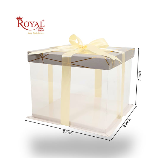 Tall Transparent Square Box with Ribbon I Grey I Perfect for Cakes & Gifts!