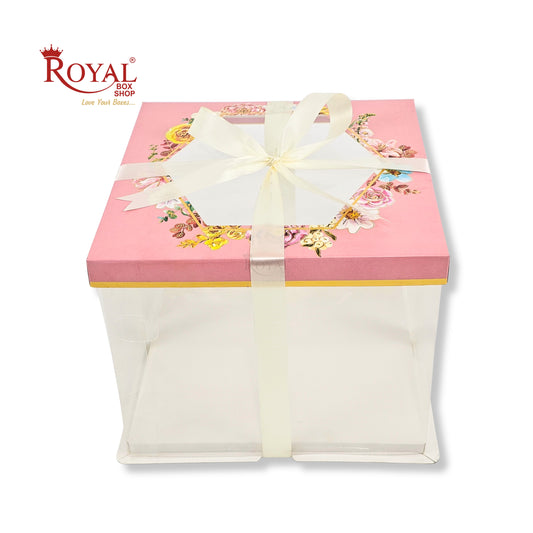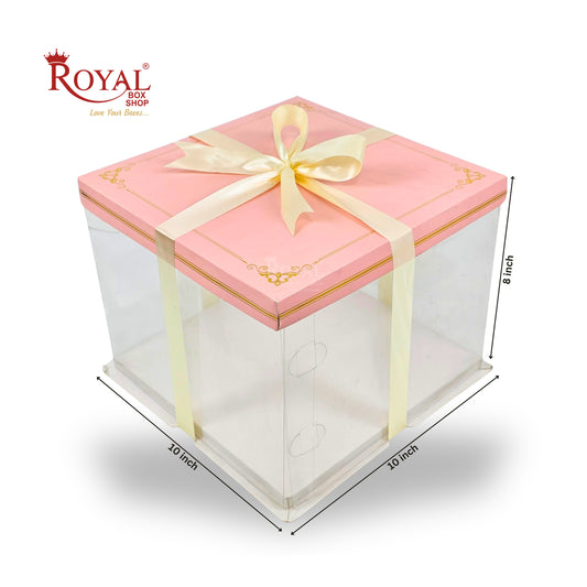 Tall Transparent Square Box with Ribbon I Pink I Perfect for Cakes & Gifts!