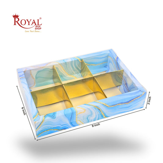 6pc Brownie Hamper Box with Transparent Lid | 9x6x2 inches | Blue Marble Print